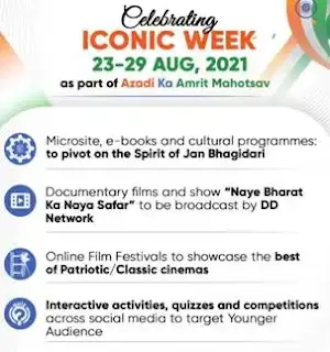 केंद्रीय सूचना और प्रसारण मंत्रालय अपने ‘आइकॉनिक वीक’ समारोह के तहत 23 से 29 अगस्त, 2021 तक ‘आजादी का अमृत महोत्सव’ मनाने के लिए अनेक उत्कृष्ट कार्यकलापों की एक श्रृंखला शुरू करने के लिए पूरी तरह से तैयार है। माननीय केंद्रीय सूचना एवं प्रसारण मंत्री श्री अनुराग ठाकुर भव्य समारोह की शुरुआत करेंगे जिसमें ‘जन भागीदारी और जन आंदोलन’ की समग्र भावना के तहत देश भर से लोगों की भागीदारी आकर्षित की जाएगी। इसका उद्देश्य व्यापक आउटरीच कार्यकलापों के माध्यम से ‘नए भारत’ की अद्भुत यात्रा को दर्शाना और स्वतंत्रता संग्राम के ‘गुमनाम नायकों’ सहित स्वतंत्रता सेनानियों के बहुमूल्य योगदान का जश्न मनाना है।
